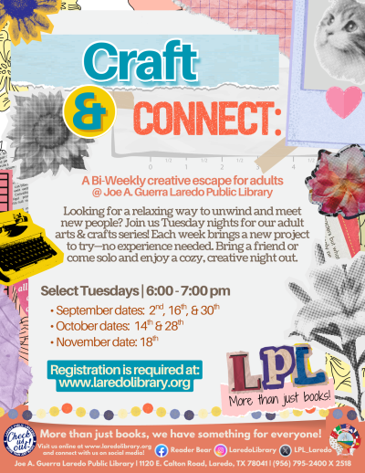 Are you an adult looking for a space to connect with others and your own creativity? Look no further, your local library is here to help! Join us for our new Craft & Connect program this Fall 2025! On select Tuesdays, we’ll have a new art or craft project for you to try and a cozy community for you to be a part of! De-stress and try something new with us!