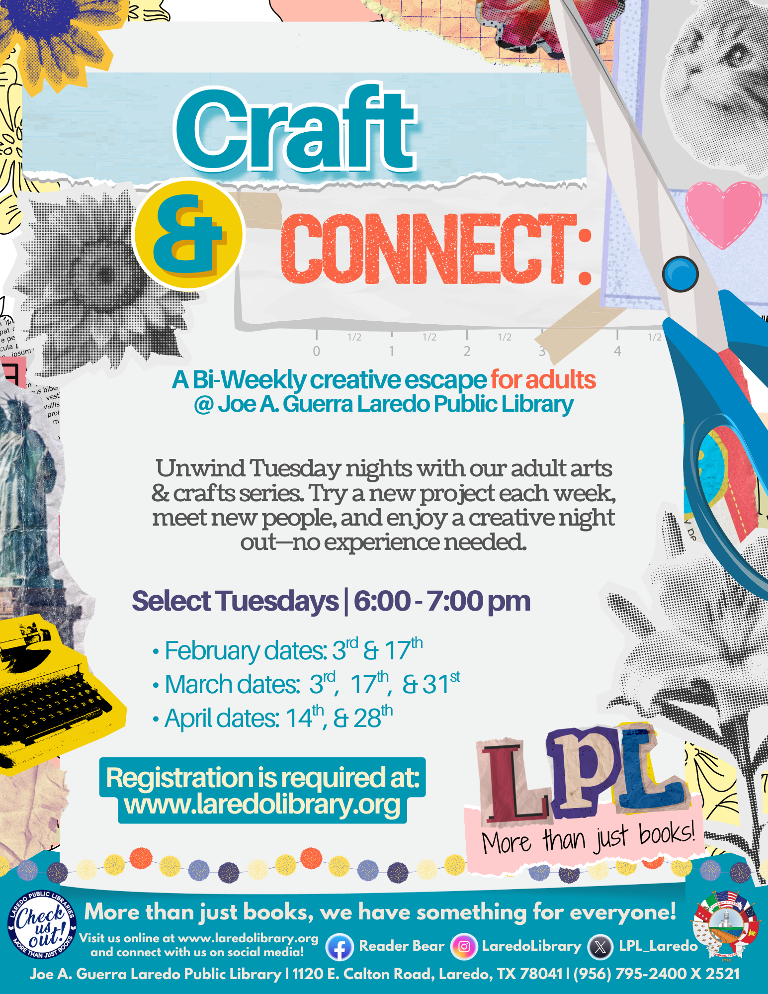 Are you an adult looking for a space to connect with others and your own creativity? Look no further, your local library is here to help! Join us for our Craft & Connect program this Spring 2026! On select Tuesdays, we’ll have a new art or craft project for you to try and a cozy community for you to be a part of! De-stress and try something new with us!